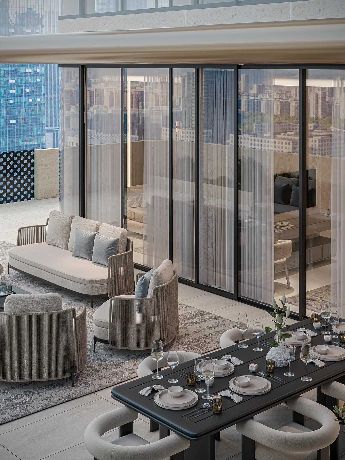 Home to exquisite residences of one, two, and three bedrooms and exclusive premium apartments, each space is designed for harmony and comfort. The top two floors are a haven of amenities that urge you to relax while offering a view of the placid, endless horizons.
