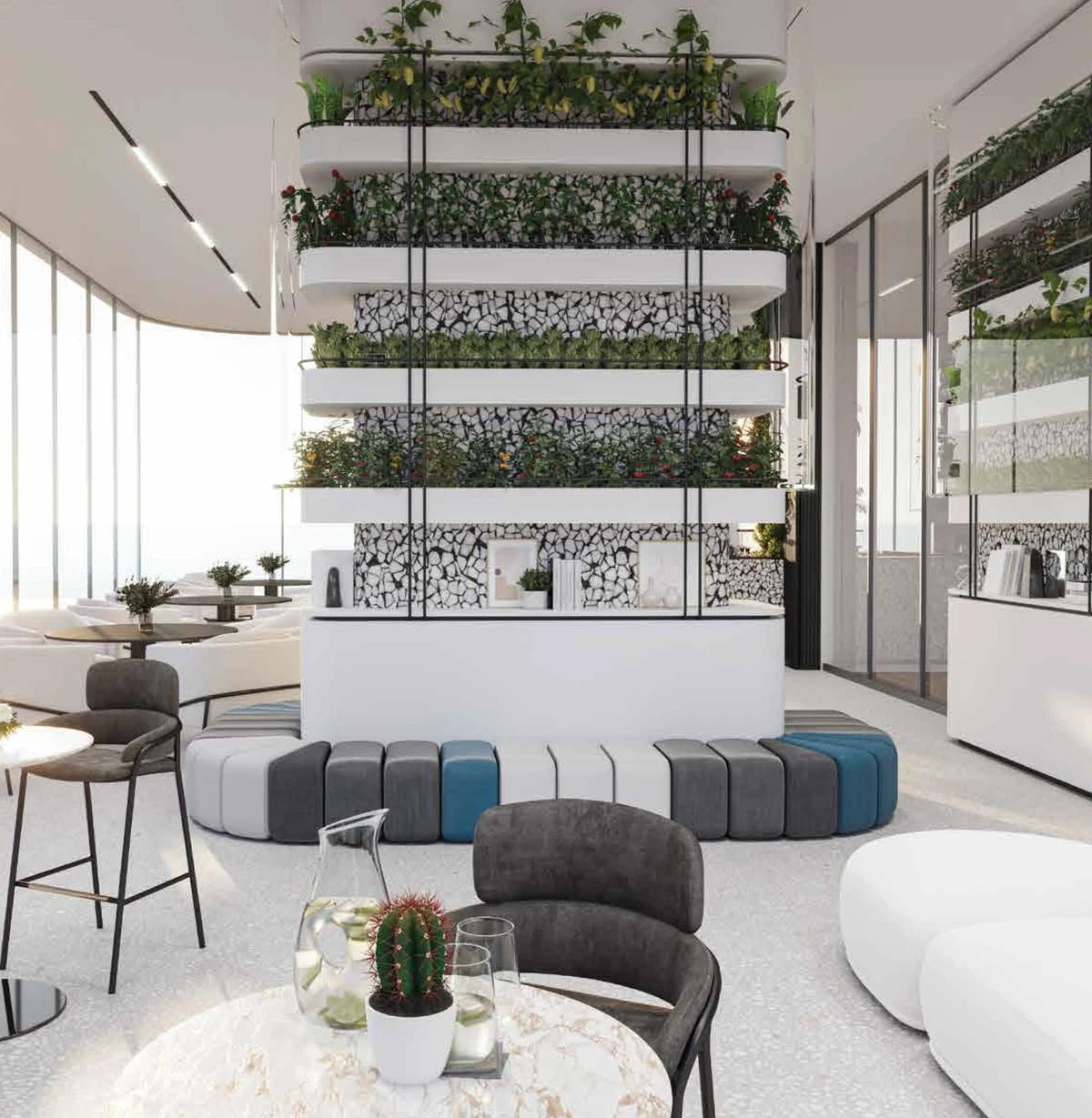 Residents of Treppan Living can indulge in a plethora of amenities including an infinity swimming pool, aqua gym, spa, koi pond, BBQ area, kids’ pool, and a serene yoga area. Additionally, a rooftop sun deck & jacuzzi offer the perfect retreat to unwind and relax while soaking in panoramic views of the surroundings.