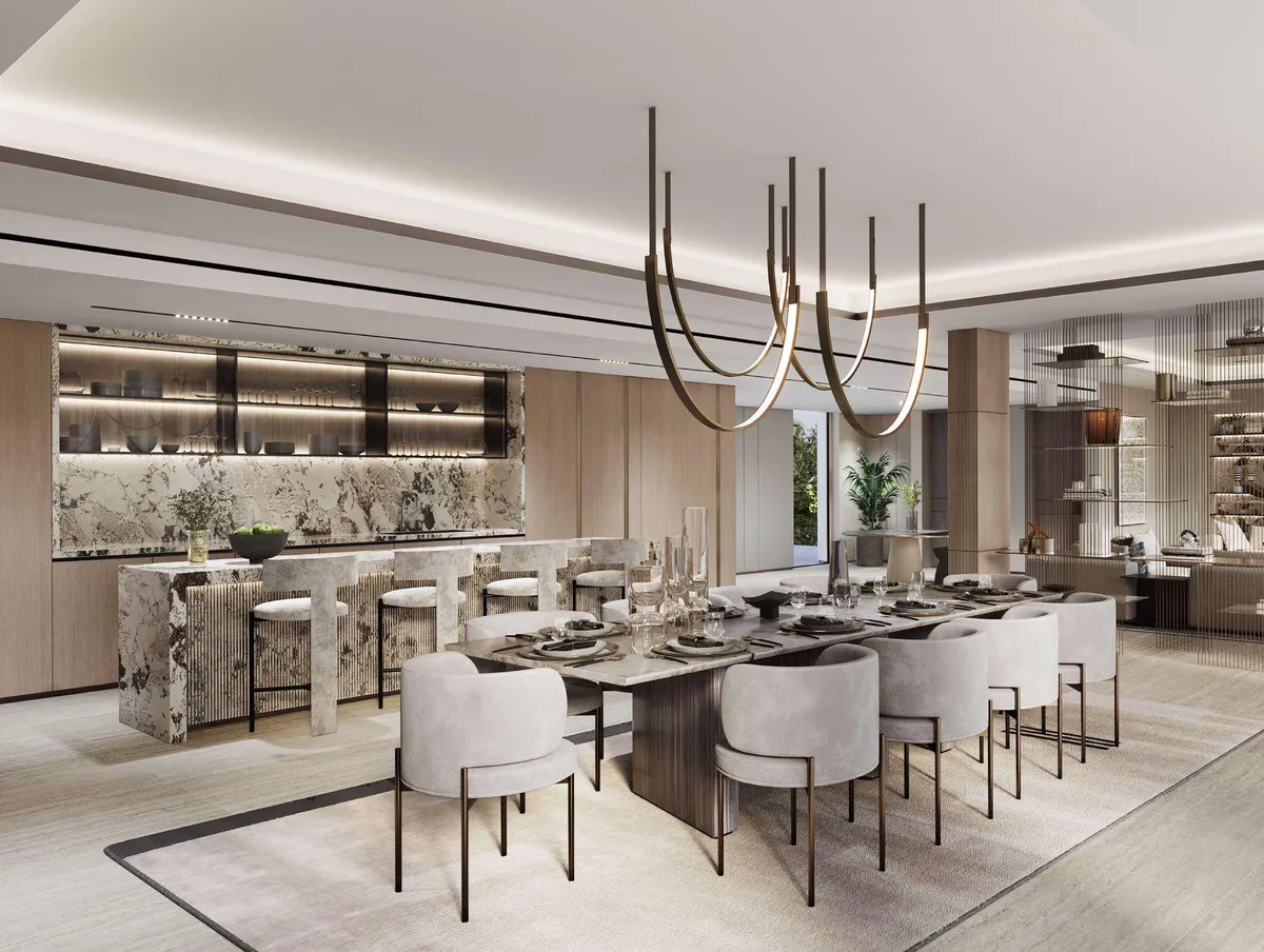 A stunning and unique entrance portal exudes luxury and exclusivity.