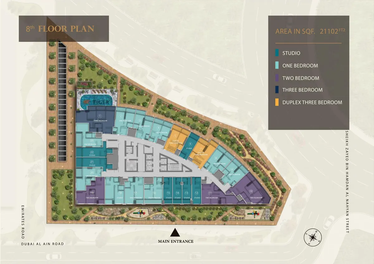 The V Tower is a breathtaking residential address offering stunning 1,2,3 bedroom apartments in Dubai. This project is tucked seamlessly at Dubailand Residence Complex in Wadi Al Safa 5, Dubai. V tower is a luxurious focused residency, that aims to give plush living experiences to its residents. Being a project by renowned Tiger Properties, you can expect the standard of living to be uncompromising. Living here is about having access to unparalleled amenities and facilities. This building is a 17-storey development, offering studios to 3BR apartments.